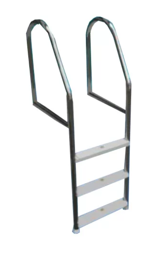 Лестница оснащена четырьмя противоскользящими ступенями, обеспечивающими комфорт и безопасность при использовании. Поручни крепятся к борту бассейна с помощью пластиковых стаканов (для бетонных бассейнов) или фланцев, а нижняя часть упирается в стенку бассейна через резиновые заглушки, предотвращающие повреждение покрытия.