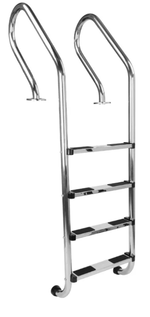 Лестница набортная для бассейна SF-415 — предназначена для комфортного и безопасного спуска в бассейн. Лестница состоит из трех ступеней изготовленых из полированной нержавеющей стали марки AISI-304. Поручни также изготовленных из нержавеющей стали. Они крепятся к борту при помощи — пластиковых стаканов (для бетонных бассейнов) или фланцев. Нижняя часть лестницы просто упирается в стену бассейна. Ступени крепятся к поручням с помощью болтов. Лестница SF-415 сделана для полностью заглубленных бассейнов с узким бортом. В комплекте поставляются крепежные элементы.