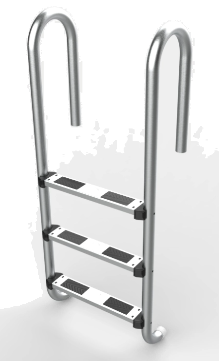 Лестница набортная для бассейна SU-215 — предназначена для комфортного и безопасного спуска в бассейн. Лестница состоит из трех ступеней изготовленых из полированной нержавеющей стали марки AISI-304. Поручни также изготовленных из нержавеющей стали. Они крепятся к борту при помощи — пластиковых стаканов (для бетонных бассейнов) или фланцев. Нижняя часть лестницы просто упирается в стену бассейна. Ступени крепятся к поручням с помощью болтов. Лестница SU-215 сделана для полностью заглубленных бассейнов с узким бортом. В комплекте поставляются крепежные элементы.
