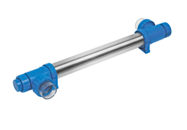 Применение ультрафиолетовой установки одновременно с реагентной дезинфекцией снижает потребление хлора до 80%. Корпус установки выполнен из нержавеющей стали AISI-316L.